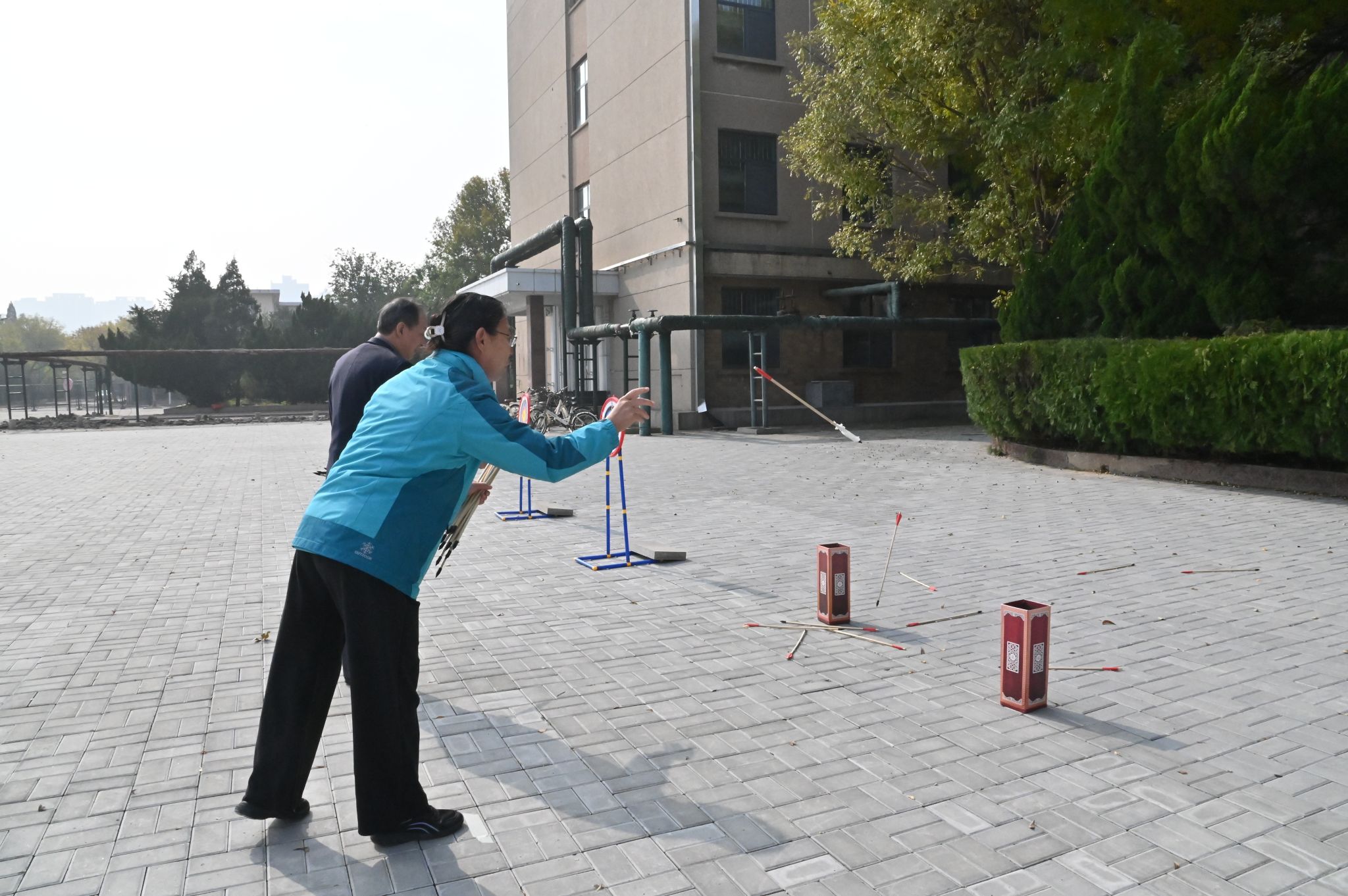座谈会后,退休教职工们走到室外,参加了射箭和投壶趣味活动,现场气氛热烈融洽。
